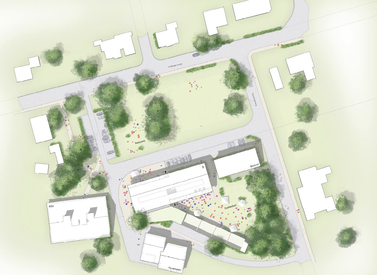 Die Begegnungsstätte soll nicht nur funktional, sondern auch architektonisch hochwertig gestaltet werden und als neue Ortsmitte die Identität der Gemeinde stärken. Nachhaltigkeit, der Einsatz regionaler Materialien sowie erneuerbare Energien sind wesentliche Bestandteile der Planung.