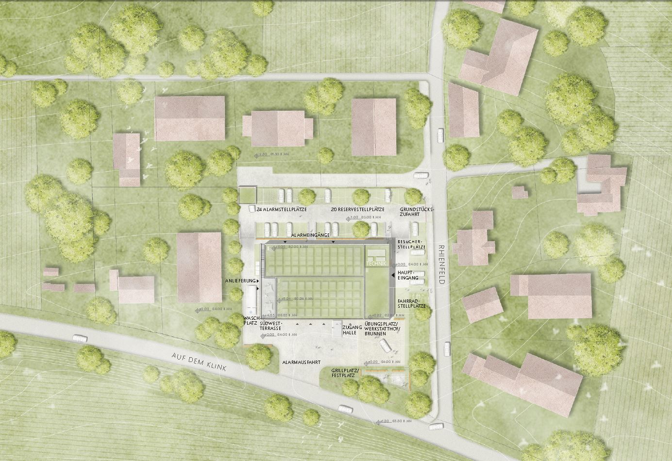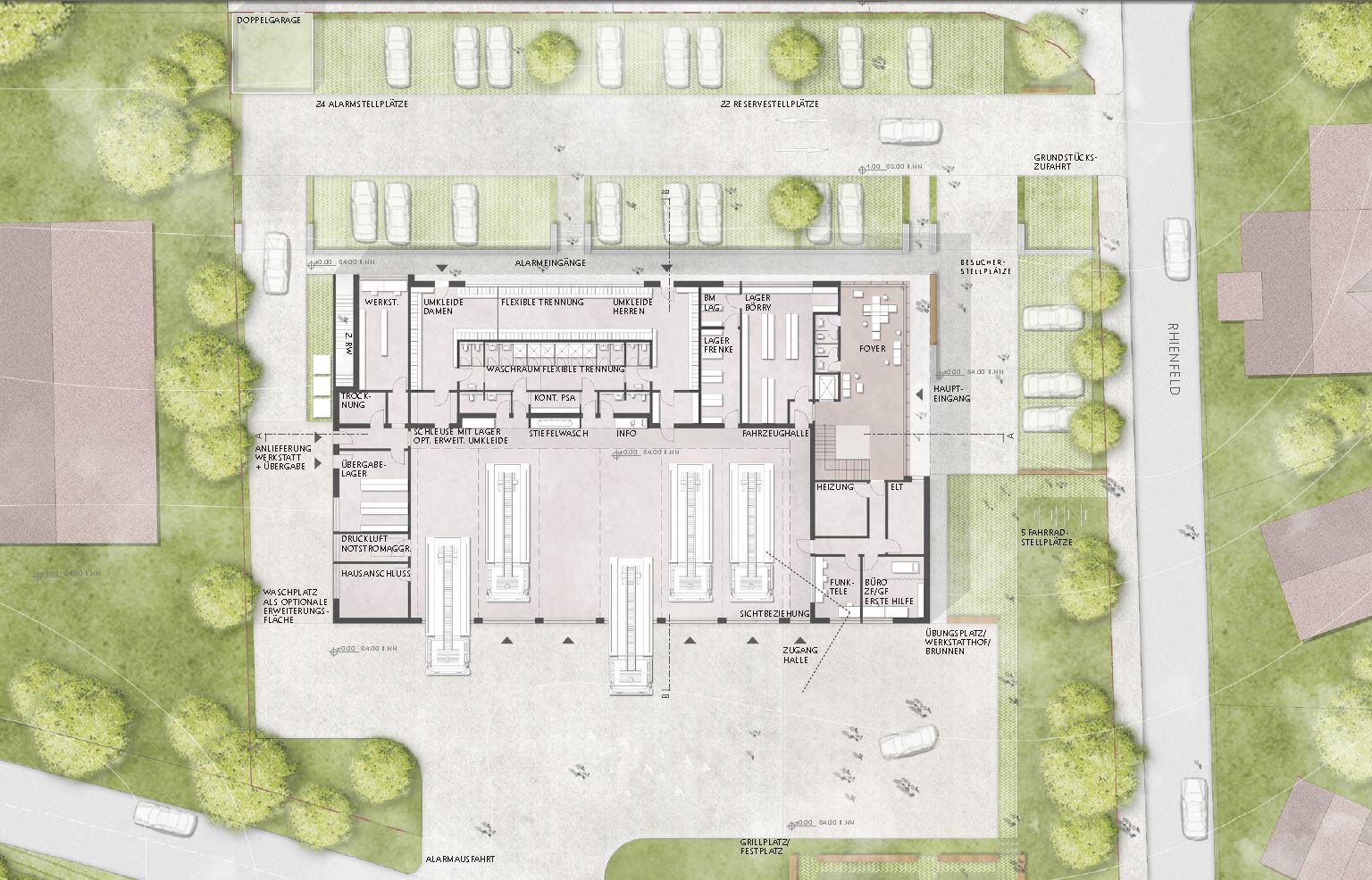 Neben dem Feuerwehrgebäude ist auf dem Grundstück auch eine Wohnbebauung vorgesehen. Die Planung verfolgt das Ziel, einen generationenübergreifenden Ort zu schaffen, der sowohl die heutigen Bedürfnisse der Einsatzkräfte abbildet als auch flexibel auf zukünftige Entwicklungen reagieren kann.