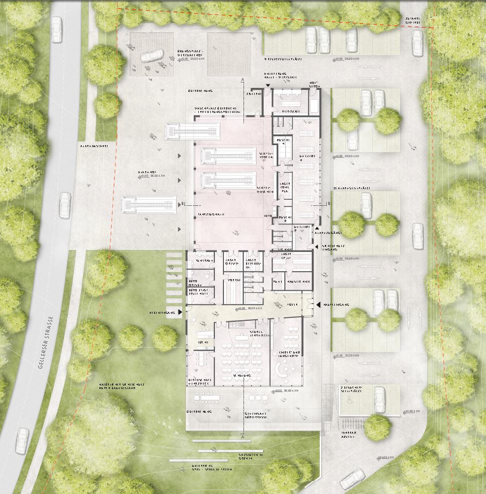 Der Neubau mit fünf Fahrzeugstellplätzen und der Option auf Erweiterung wird auf einem bislang landwirtschaftlich genutzten Grundstück entstehen. Zusätzlich ist auf dem Gelände eine Fläche für einen Gewerbebetrieb vorgesehen. Das Grundstück und die bestehende Umgebung werden im Rahmen der Planung funktional und zukunftsorientiert gestaltet.